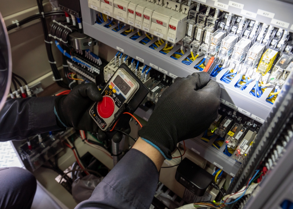 制御盤はエレベーターをコントロールする、言わば頭脳のような部品です。電気部品(基板、電磁接触器)が多く使われているため、部品の経年数や劣化具合を調査します。
